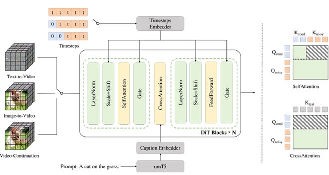 在输入数据层面,美团团队借助WAN2.1模型的VAE将视频像素压缩成潜空间token,使视频数据能以更紧凑的形式参与建模,整体压缩率高达4×16×16倍;文本输入则由umT5多语言编码器处理,支持中英文双语,进一步提升了模型的通用性。
